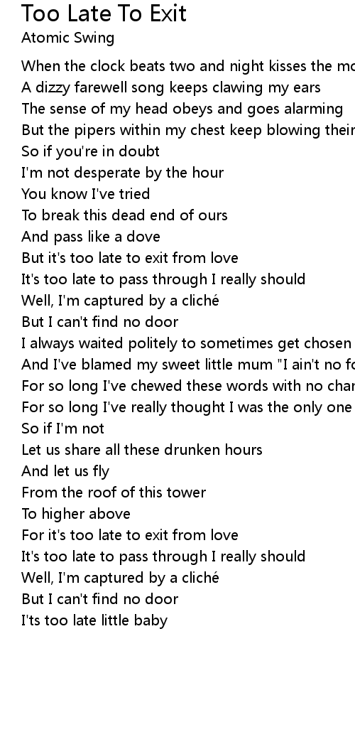 | For it's too late to exit from love | |