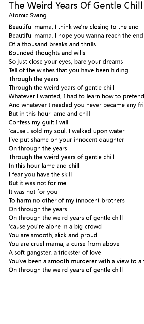 Through the weird years of gentle chill |