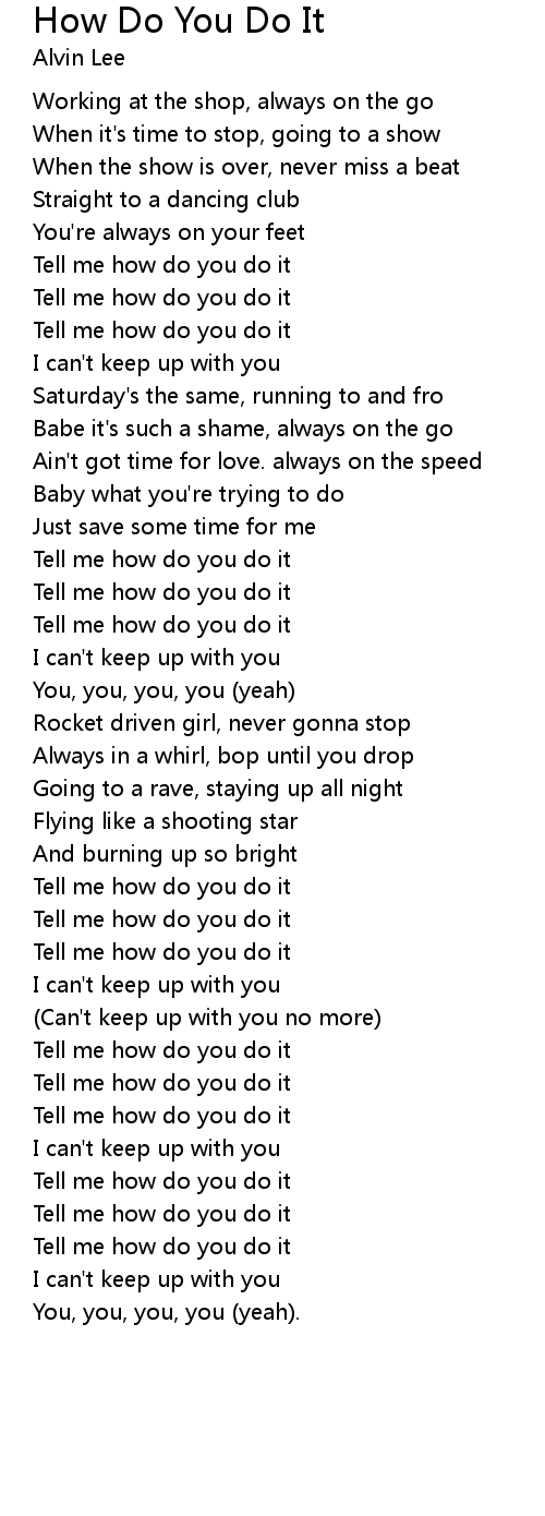 Tell me how do you do it |