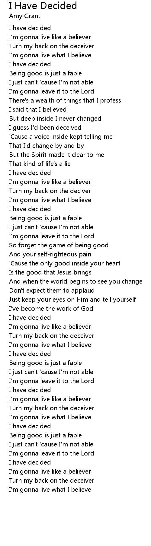 I Have Decided Lyrics