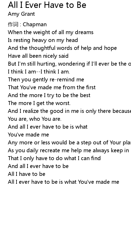| But I'm still hurting, wondering if I'll ever be the one | |