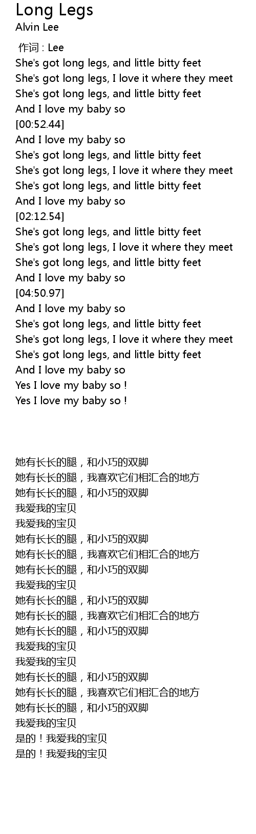 | [00:44.61] | She' s got long legs, and little bitty feet |