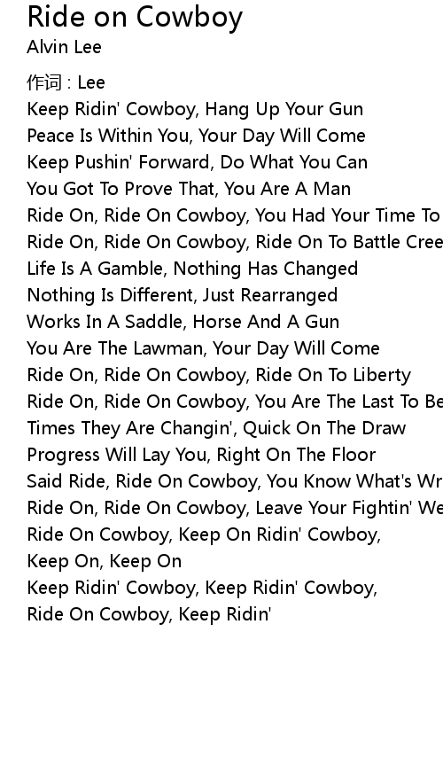 | Ride On Cowboy, Keep On Ridin' Cowboy, | |