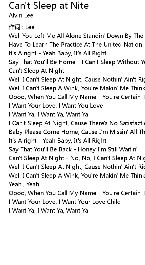 | Can' t Sleep At Night No, No, I Can' t Sleep At Night | |
