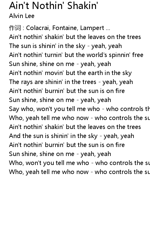 | Ain't nothin' shakin' but the leaves on the trees | |