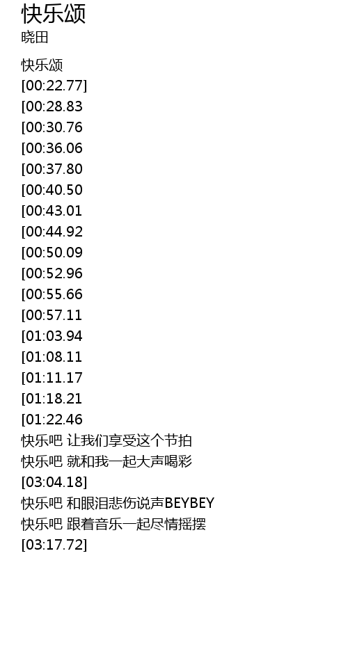 | [02:38.37][01:11.17] | kuai le ba he yan lei bei shang shuo sheng BEYBEY |