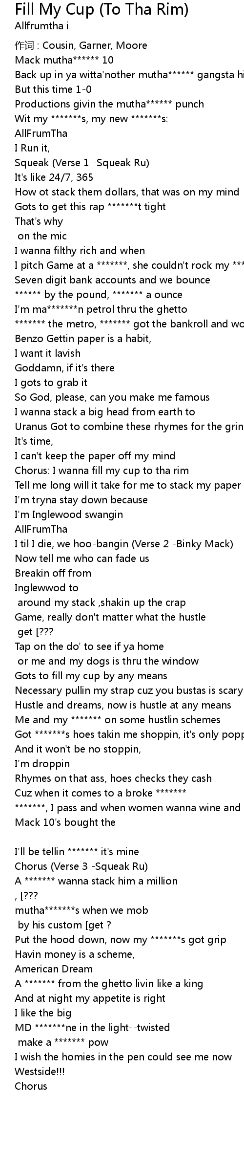 | Live [in plusses ?] by his custom [get ?] that's the *******t | |