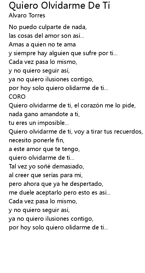| Quiero olvidarme de ti, el corazón me lo pide, | |