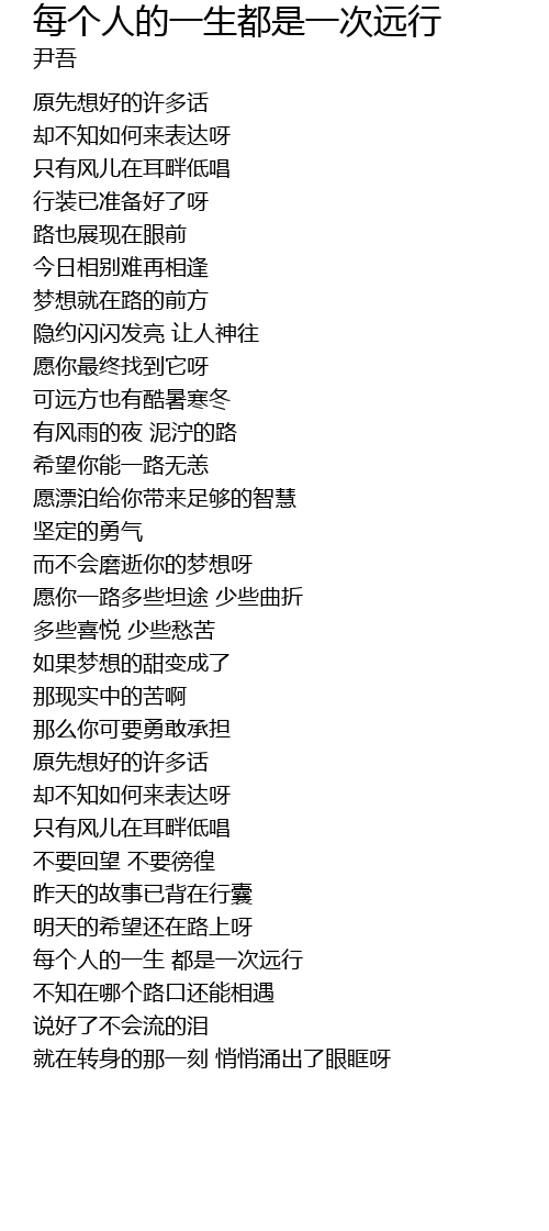 | [03:14.670] | měi ge rén de yī shēng dōu shì yī cì yuǎn xíng |