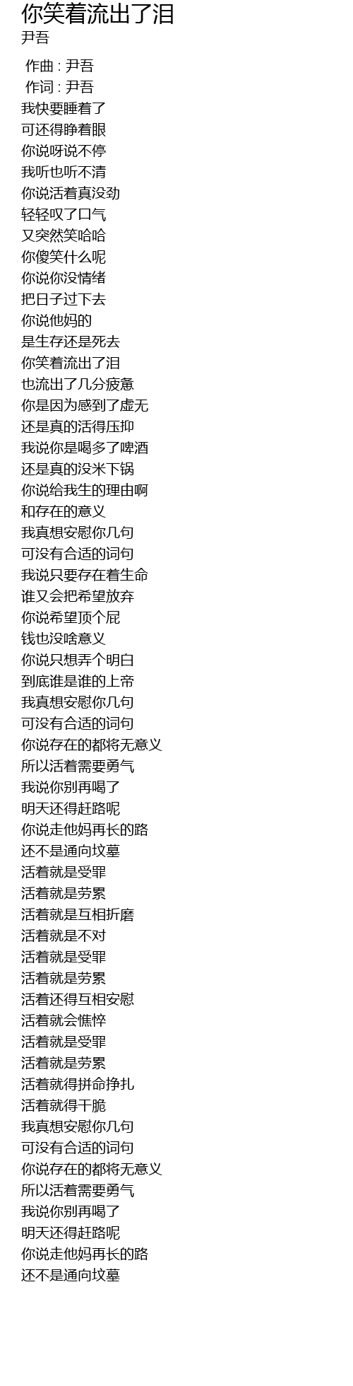 | [01:12.740] | nǐ xiào zhe liú chū le lèi |