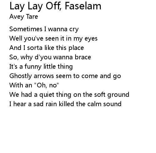 | Song | Lay Lay Off, Faselam |