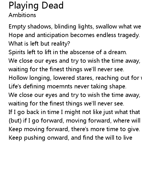 | Empty shadows, blinding lights, swallow what we have today. | |