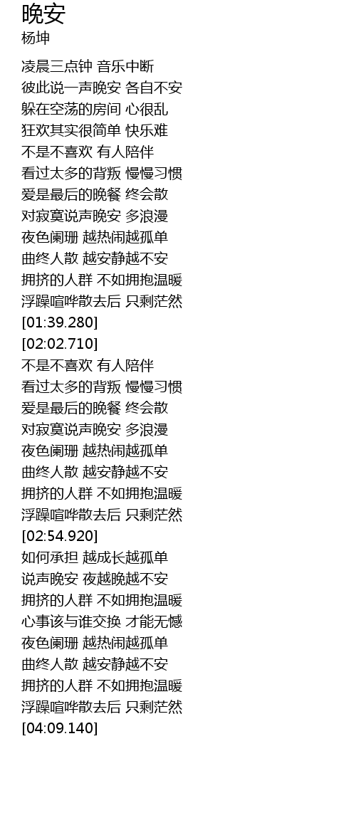 | [03:25.950] | 说声晚安 夜越晚越不安 |