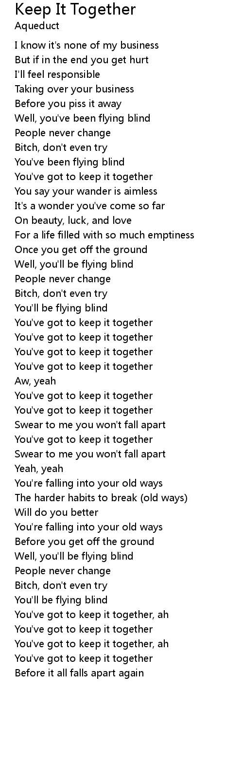You've got to keep it together |