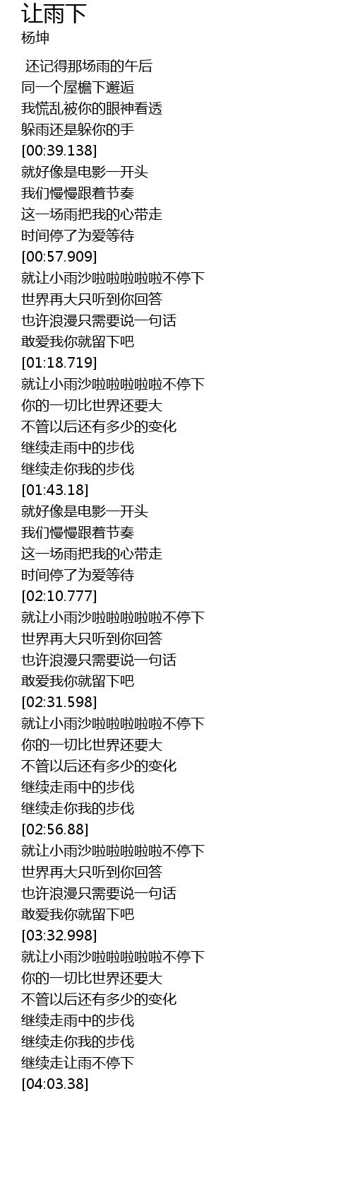 | [02:12.958] | 就让小雨沙啦啦啦啦啦不停下 |