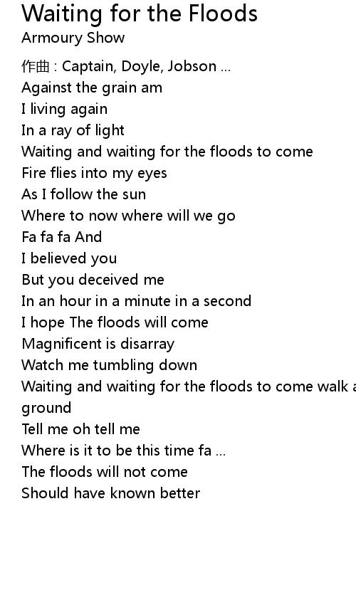 | Waiting and waiting for the floods to come walk away fist in the air feet on the ground | |