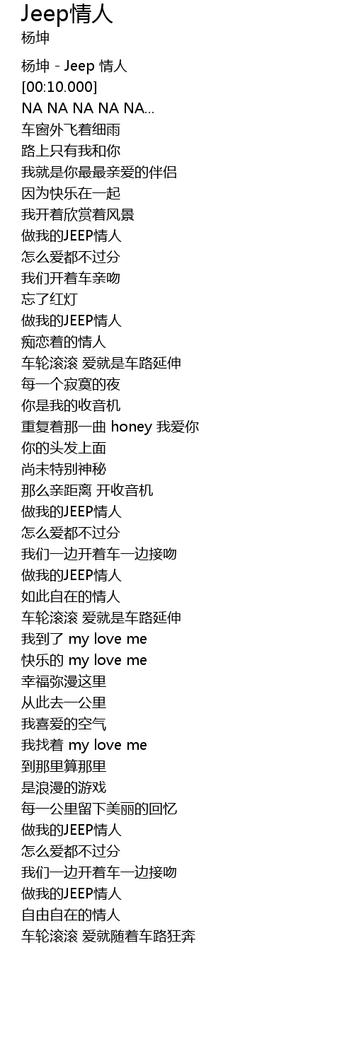 | [00:03.000] | 杨坤 - Jeep 情人 |