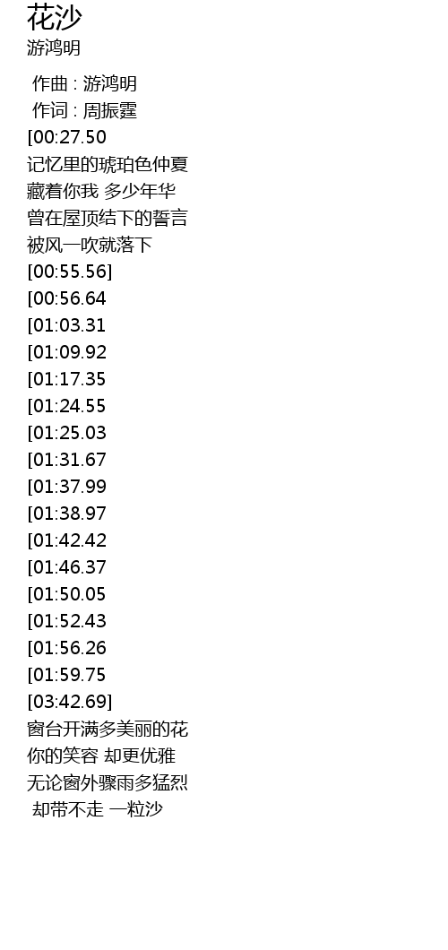 | [03:36.47][01:59.75] | 沙守着花 花开的潇洒 |