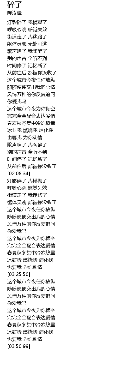 | [02:38.85] | 灯影碎了 我模糊了 |
