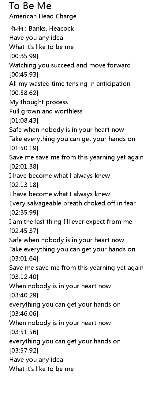| [02:36.62] | I am the last thing I' ll ever expect from me |