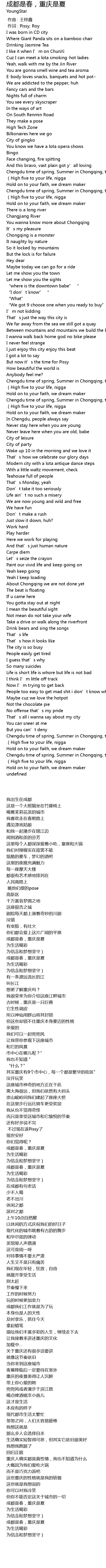 | [02:14.69] | Chengdu time of spring, Summer in Chongqing, the city. |