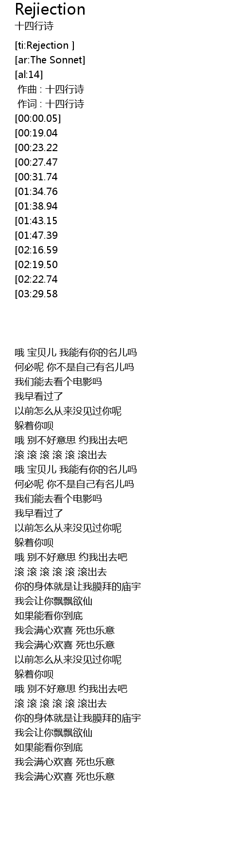 | [00:00.000] | 作曲 : 十四行诗 |