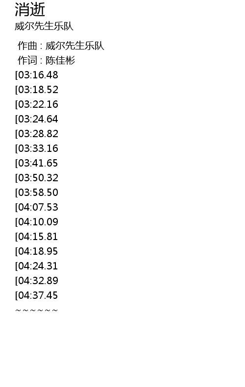 | [00:00.000] | 作曲 : 威尔先生乐队 |