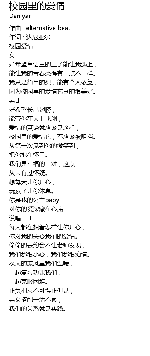 | yīn wèi xiào yuán lǐ de ài qíng tā zhēn de hěn měi hǎo. | |