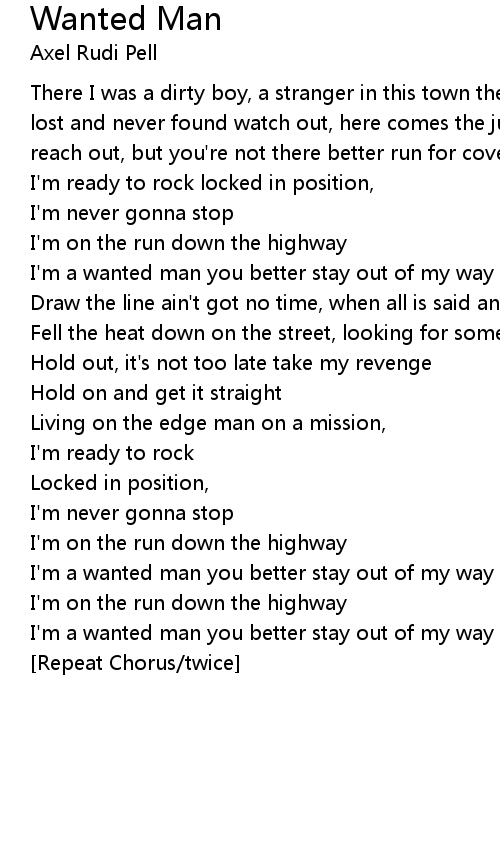 I'm a wanted man you better stay out of my way run as fast as you can [Solo] [Repeat Chorus/twice]
