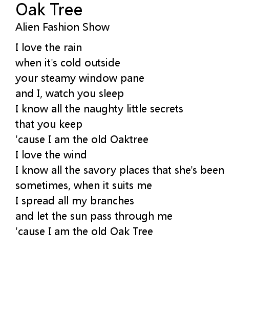 | 'cause I am the old Oak Tree |