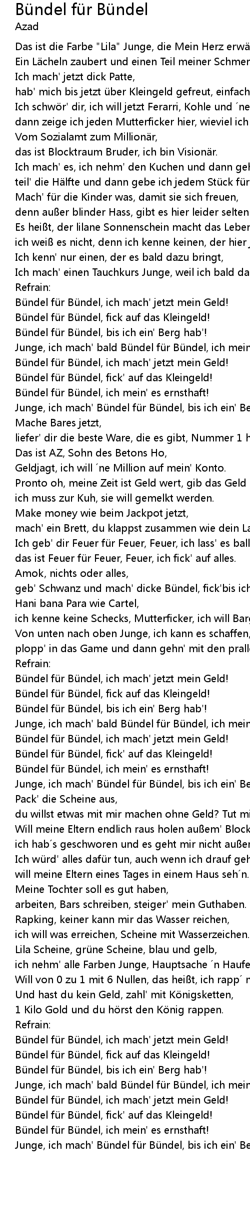 | Bündel für Bündel, fick' auf das Kleingeld! | |