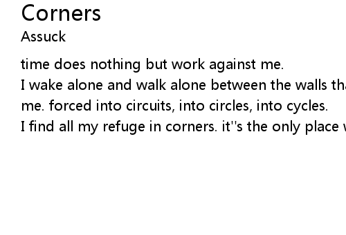 | I find all my refuge in corners. it''s the only place where things meet |