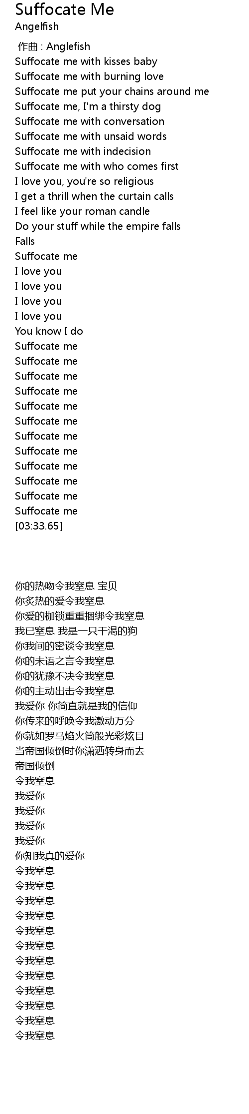 | [03:32.71] | Suffocate me |