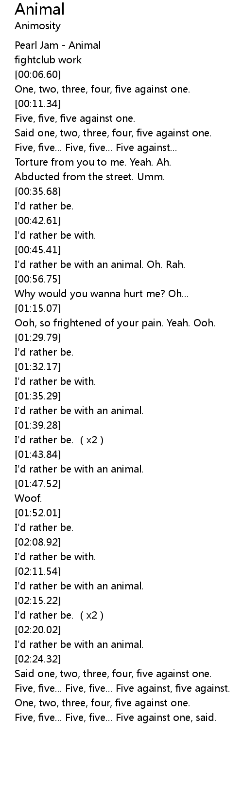 | [00:45.98] | I'd rather be with an animal. Oh. Rah. |