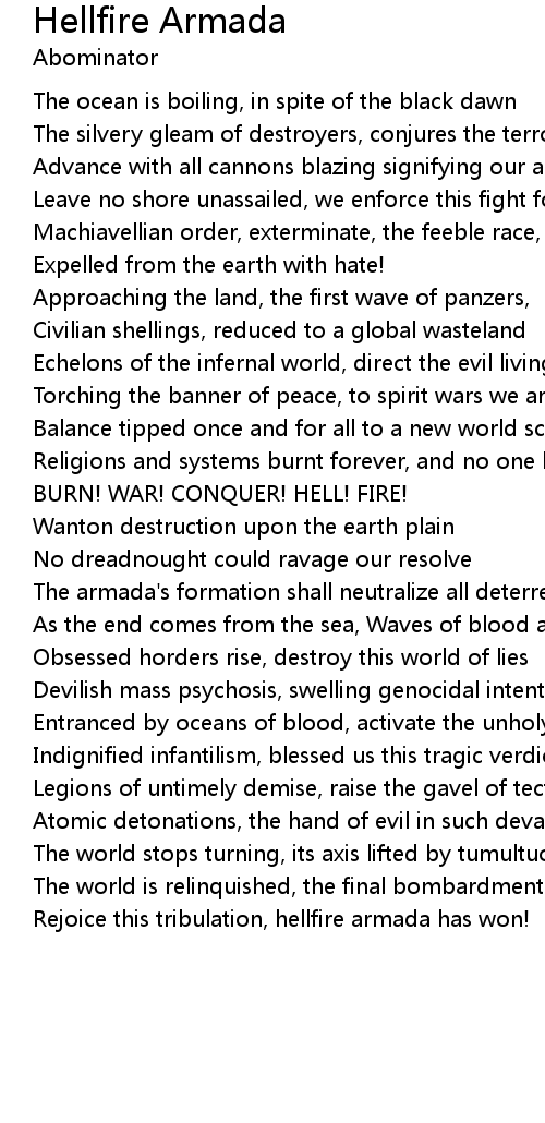 BURN! WAR! CONQUER! HELL! FIRE! |