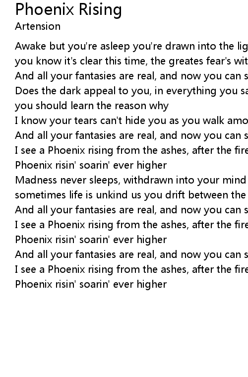 And all your fantasies are real, and now you can see I see a phoenix rising |