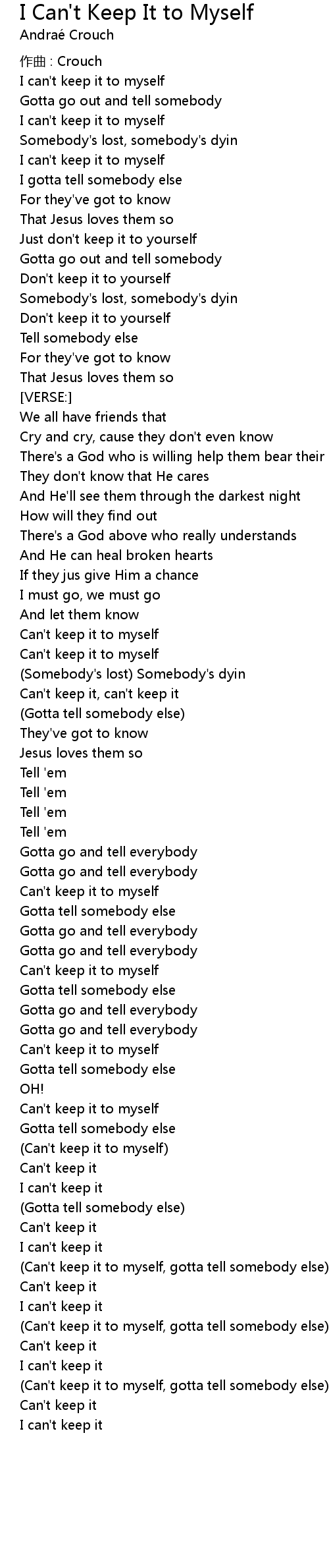 | (Can't keep it to myself, gotta tell somebody else) | |