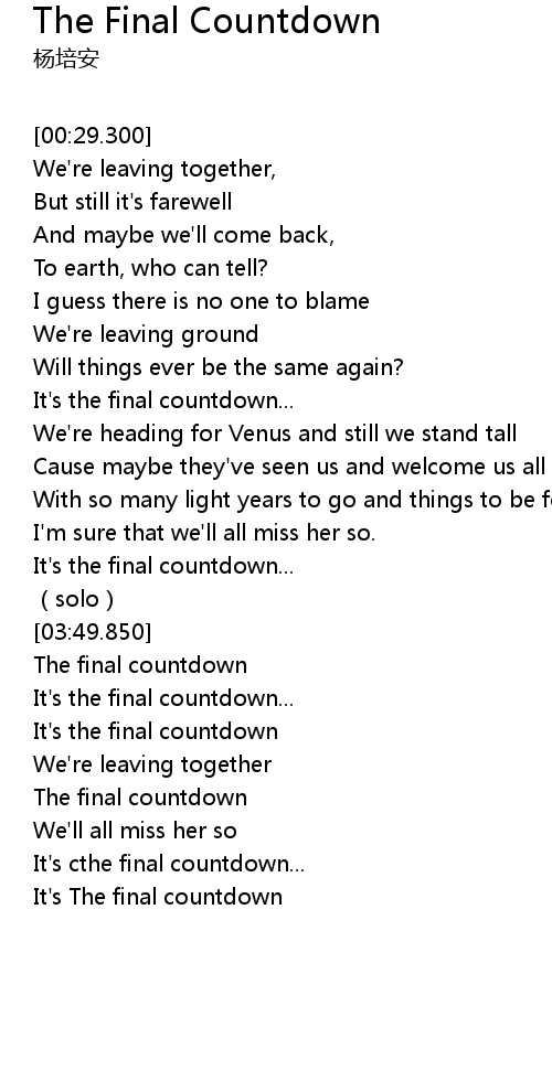 | [04:03.510] | The final countdown |