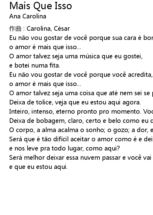 | Song | Mais Que Isso |