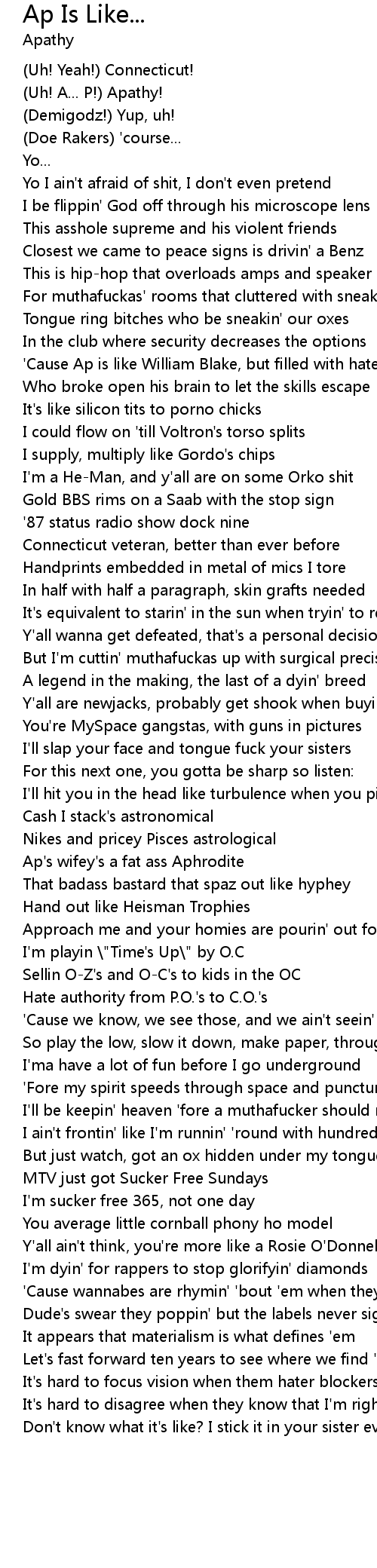 'Cause Ap is like William Blake, but filled with hate |