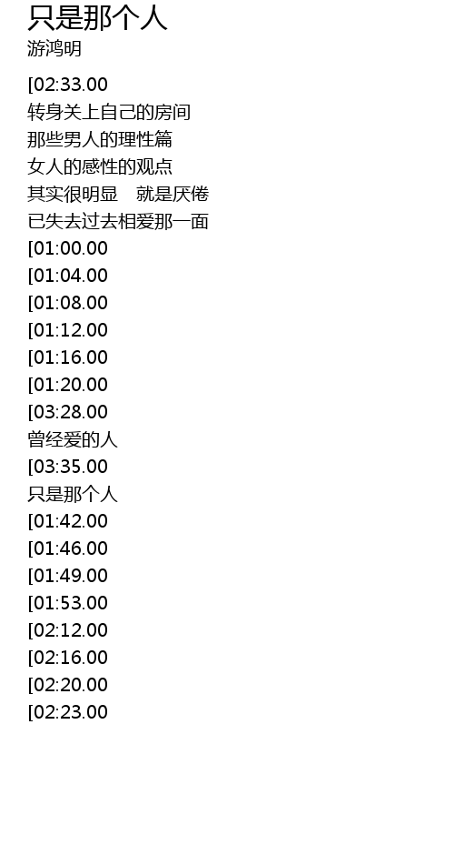 | [04:06.00][03:35.00][02:05.00][01:35.00] | 我们要承认对方称呼对方 只是那个人 |