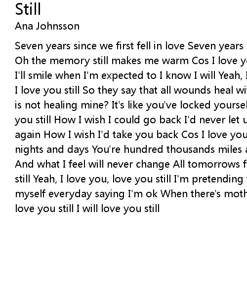 Seven years since we first fell in love Seven years since my heart came undone Oh the memory still makes me warm Cos I love you still And I will learn to go on I'll smile when I'm expected to I know I will Yeah, I will learn to move on But I love you still So they say that all wounds heal with time Then how come time is not healing mine? It's like you've locked yourself into my mind And I love you still How I wish I could go back I'd never let us make the same mistakes again How I wish I'd take you back Cos I love you still Been counting endless nights and days You're hundred thousands miles away But I feel you I feel you And what I feel will never change All tomorrows for one yesterday Cos I love you still Yeah, I love you, love you still I'm pretending to be strong Fooling myself everyday saying I'm ok When there's mothing left I will hold on I will love you still I will love you still