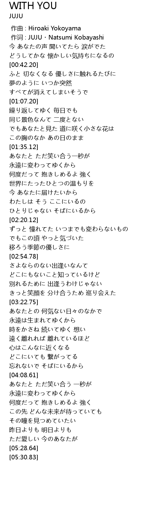 | [00:01.000] | 作词 : JUJU・Natsumi Kobayashi |
