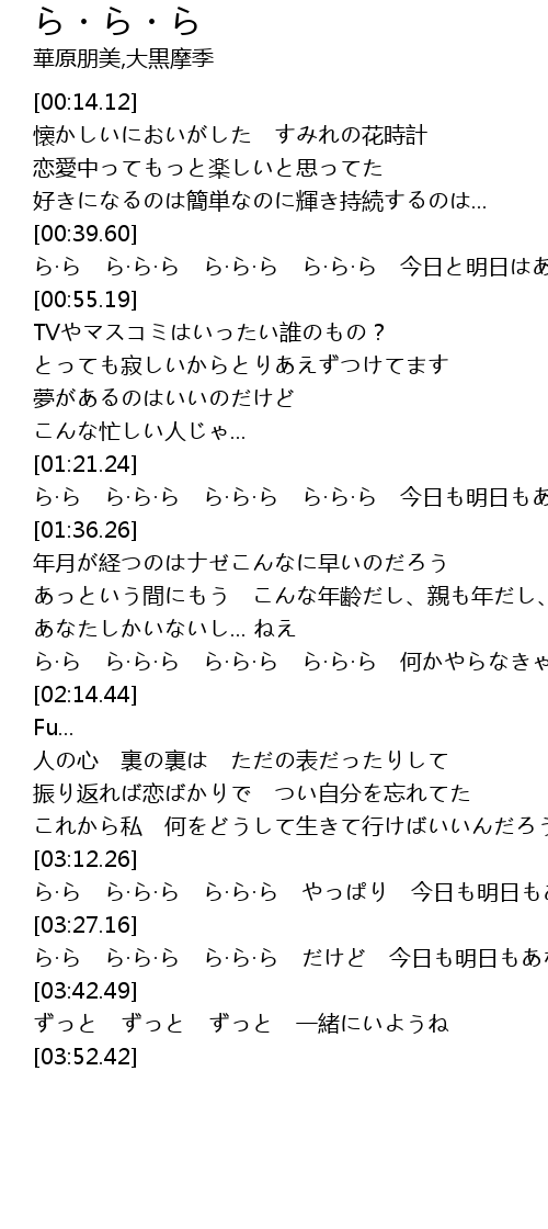 | [03:28.98] | ら·ら ら·ら·ら ら·ら·ら だけど 今日も明日もあなたに逢えない |