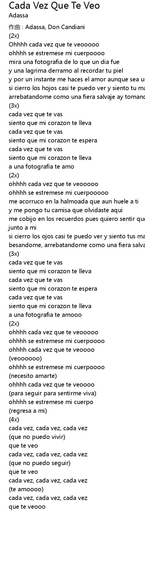 | si cierro los ojos casi te puedo ver y siento tus manos acariciandome, besandome, arrebatandome como una fiera salvaje ay tomandome | |