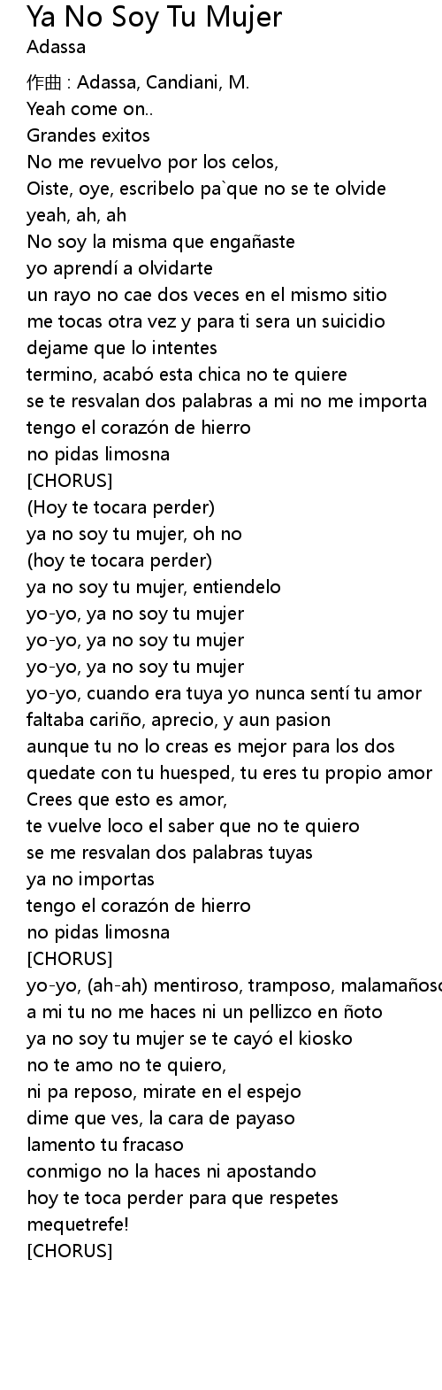 | yoyo, cuando era tuya yo nunca sentí tu amor | |