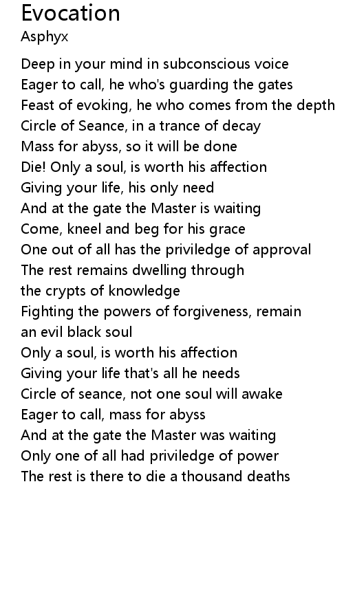 | Eager to call, mass for abyss | |