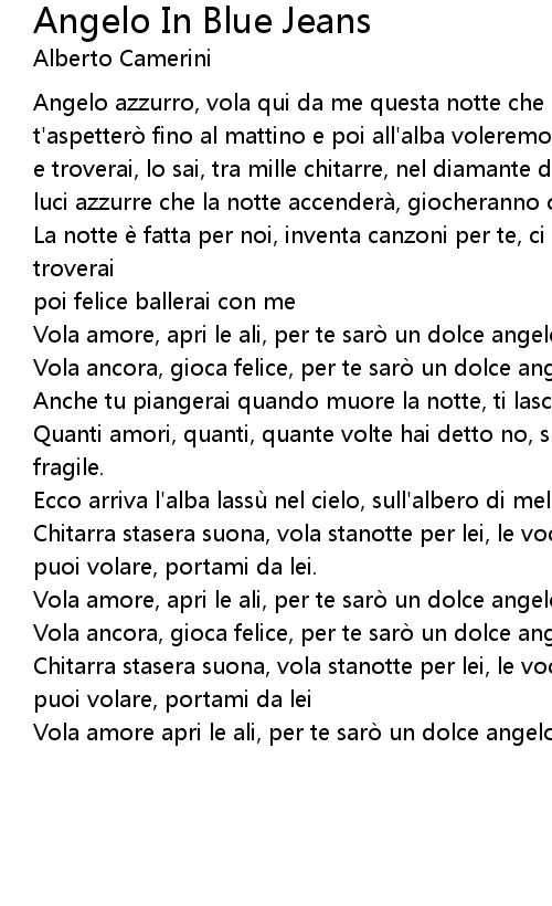 | Vola ancora, gioca felice, per te sarò un dolce angelo in blue jeans. | |