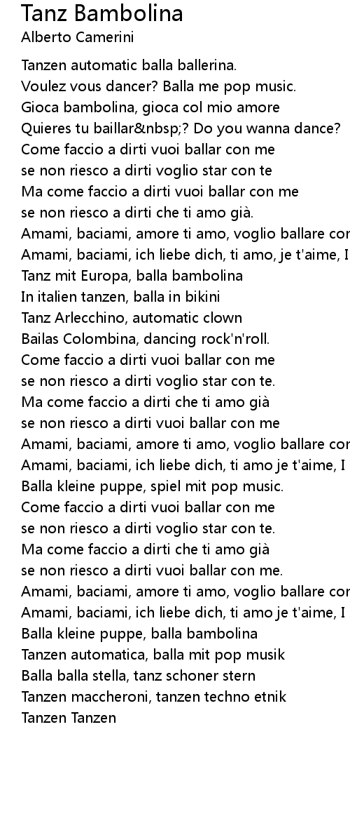 | Amami, baciami, amore ti amo, voglio ballare con te. | |