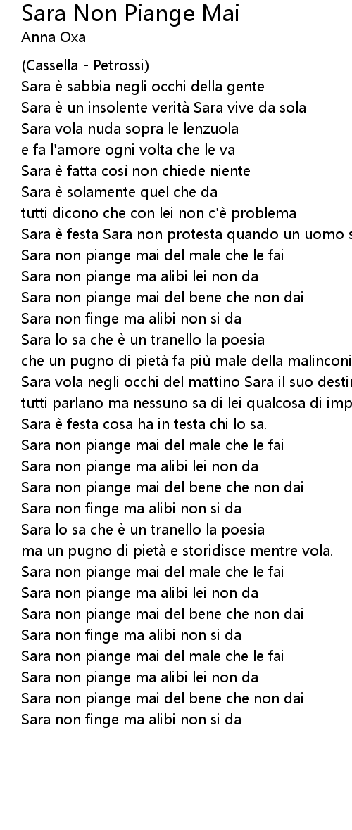 | Song | Sara Non Piange Mai |
